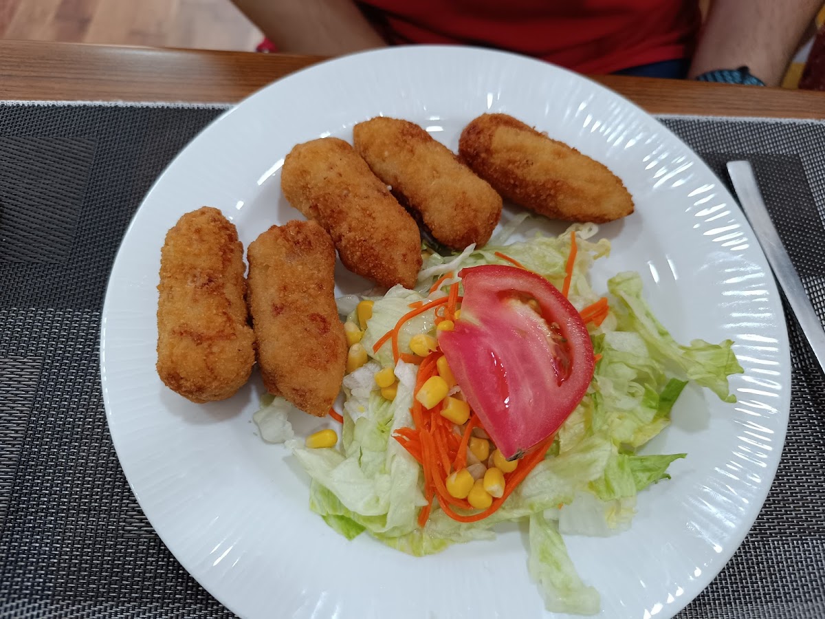 The menu here is quite broad but stays rooted in hearty, familiar flavors. Diners often choose from dishes like Paella Mixta, a sharing-friendly mixed paella, or simpler, comforting options like Pollo Estilo KFC or Hamburguesa Completa. Tapas-style portions—croquettes, pinchos, and fish fritters—also make appearances and work well for casual snacking paired with a cold cerveza. Coffee lovers will find the espresso bar handy, and breakfast goers enjoy a churro included with morning coffees.