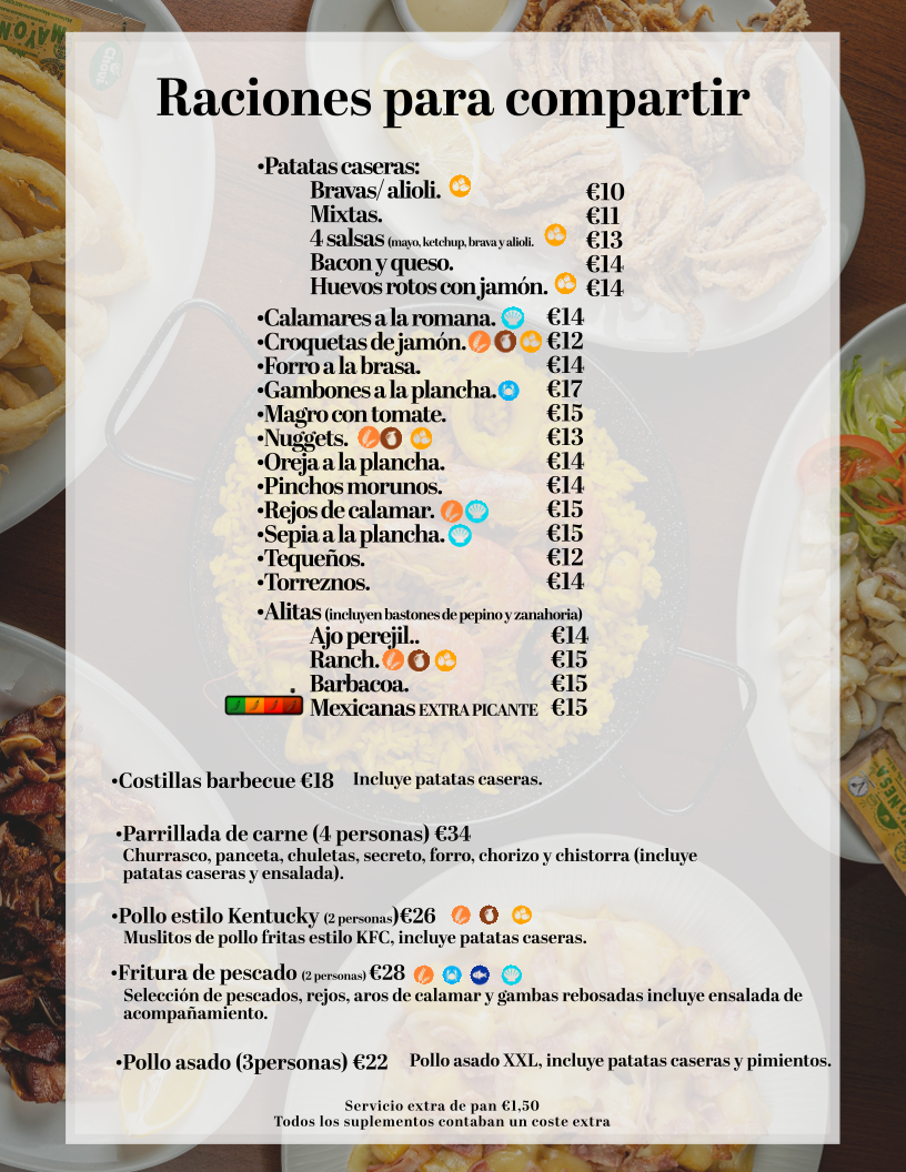 Mahou verde o roja. Mixta y 0,0. Alhambra verde +4€ Corona +4€, Heineken+4€ + Ración XL: